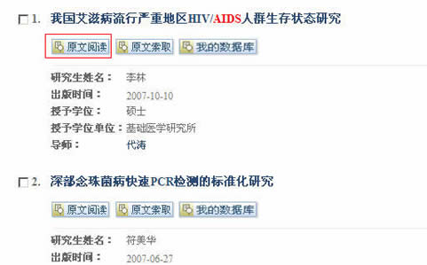 为方便您阅读北京协和医学院博硕学位论文,SinoMed提供了在线原文阅读功能。您只需进入北京协和医学院博硕学位论文库检索结果页面,点击标题下方的“原文阅读”图标,即可在线阅读学位论文全文。